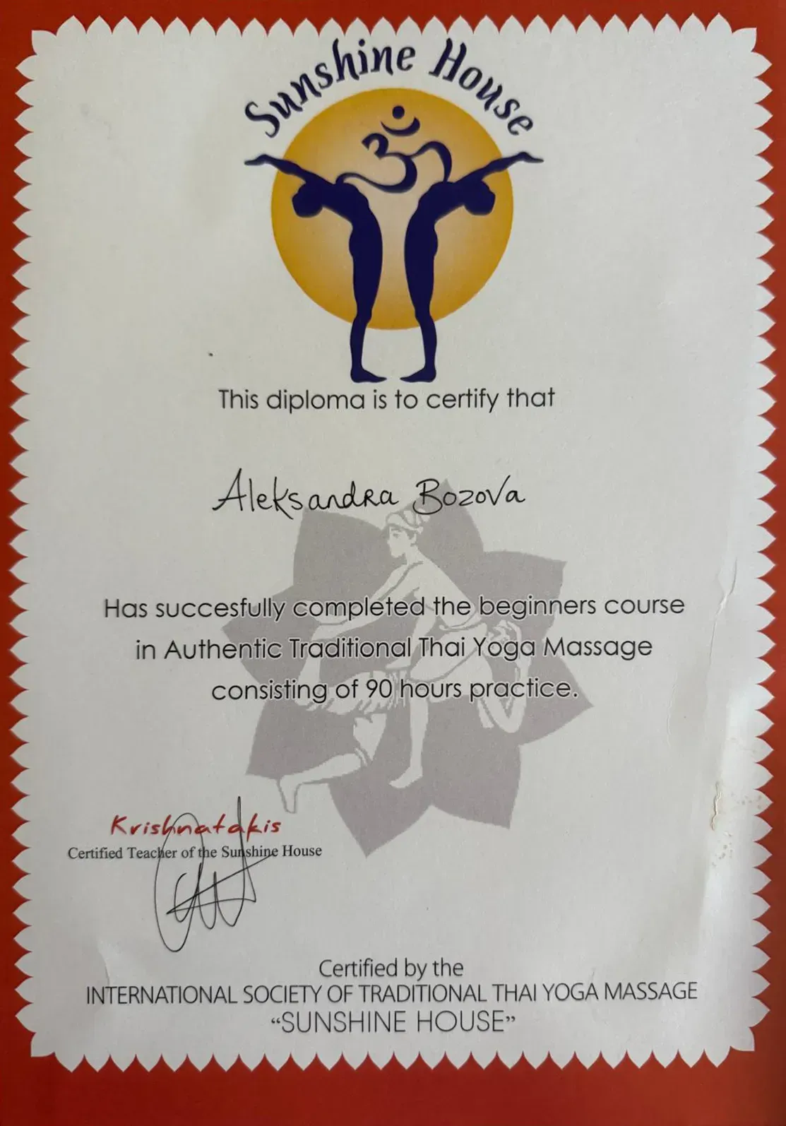 10. Certificaat Dynamische Thaise Massage – Evia, Griekenland