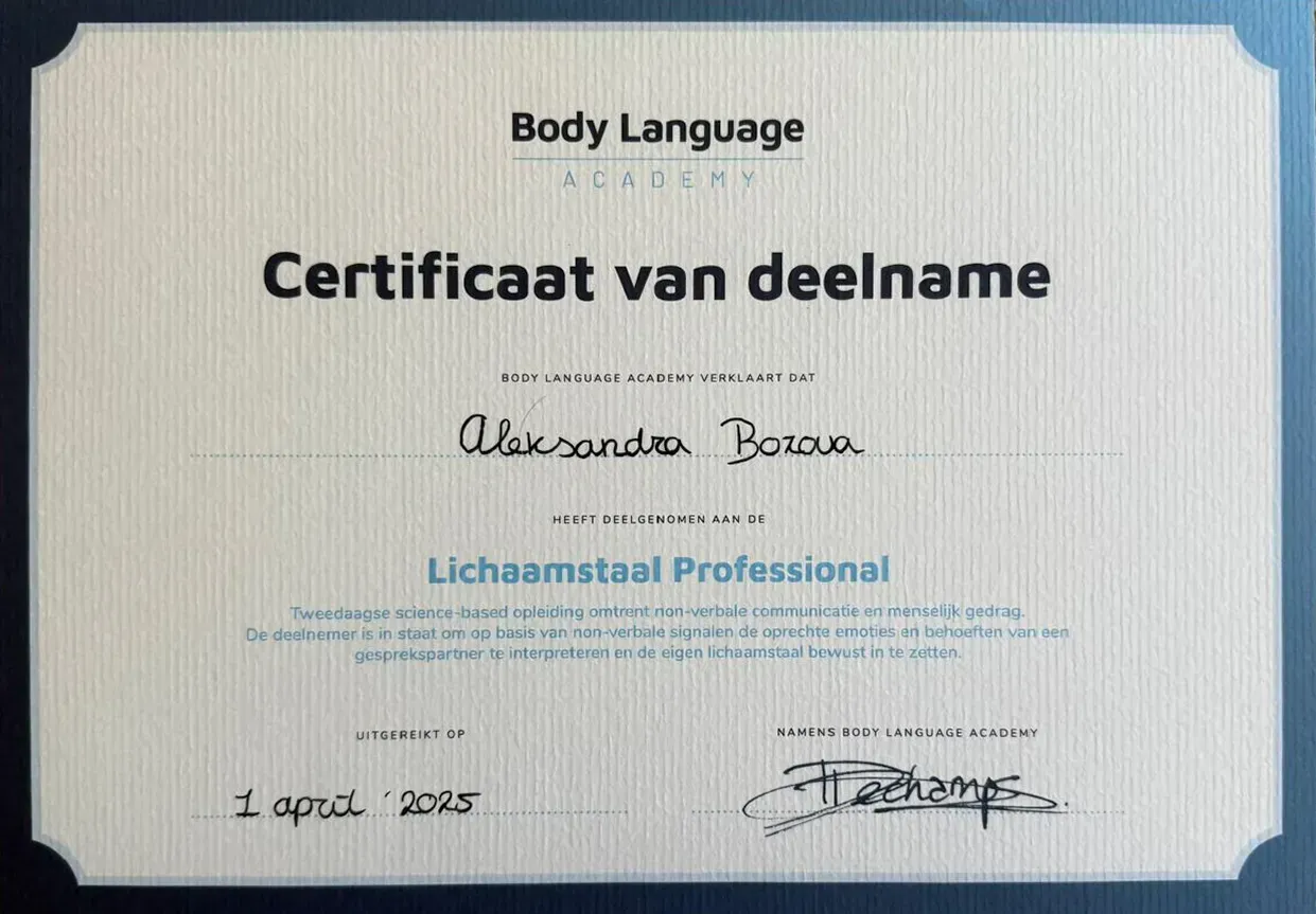 8. Cursus Lichaamstaal (Professioneel) – Body Language Academy